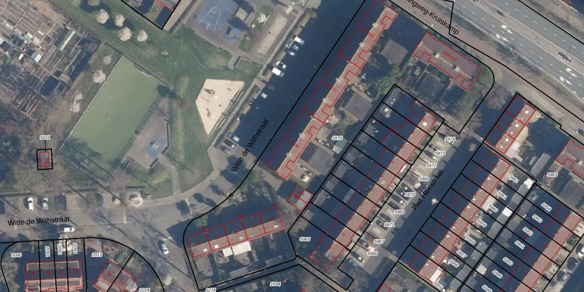 Het perceel waarop Witte de Withstraat 51-C staat heeft een oppervlakte van 3405 m². Dit is een zeer groot perceel. De perceeloppervlakte wordt geregistreerd door het Kadaster. Gedetailleerde informatie over de maten van dit perceel kunt u vinden in het rapport Kadastrale kaart met maatvoering van Witte de Withstraat 51-C.