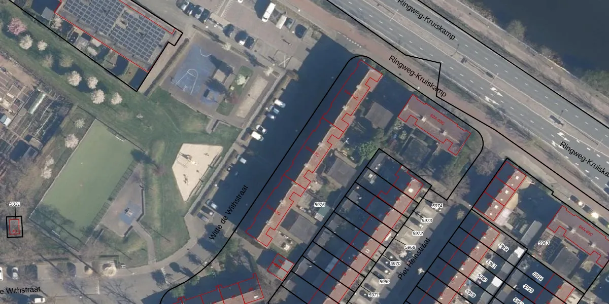 Het perceel waarop Witte de Withstraat 55-A staat heeft een oppervlakte van 3405 m². Dit is een zeer groot perceel. De perceeloppervlakte wordt geregistreerd door het Kadaster. Gedetailleerde informatie over de maten van dit perceel kunt u vinden in het rapport Kadastrale kaart met maatvoering van Witte de Withstraat 55-A.
