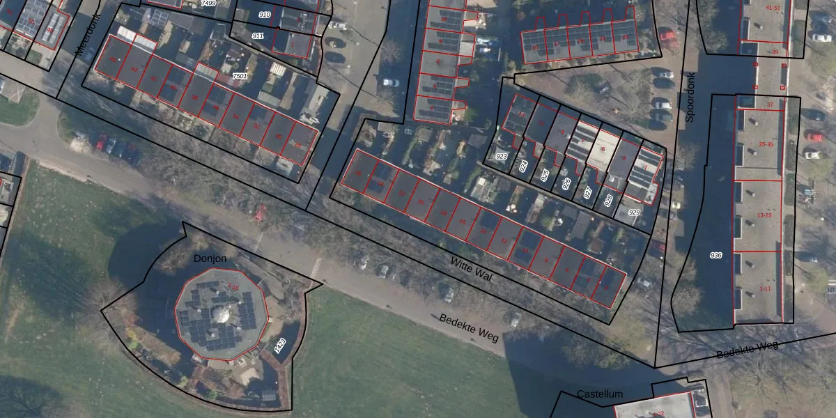 Het perceel waarop Witte Wal 20 staat heeft een oppervlakte van 4340 m². Dit is een zeer groot perceel. De perceeloppervlakte wordt geregistreerd door het Kadaster. Gedetailleerde informatie over de maten van dit perceel kunt u vinden in het rapport Kadastrale kaart met maatvoering van Witte Wal 20.