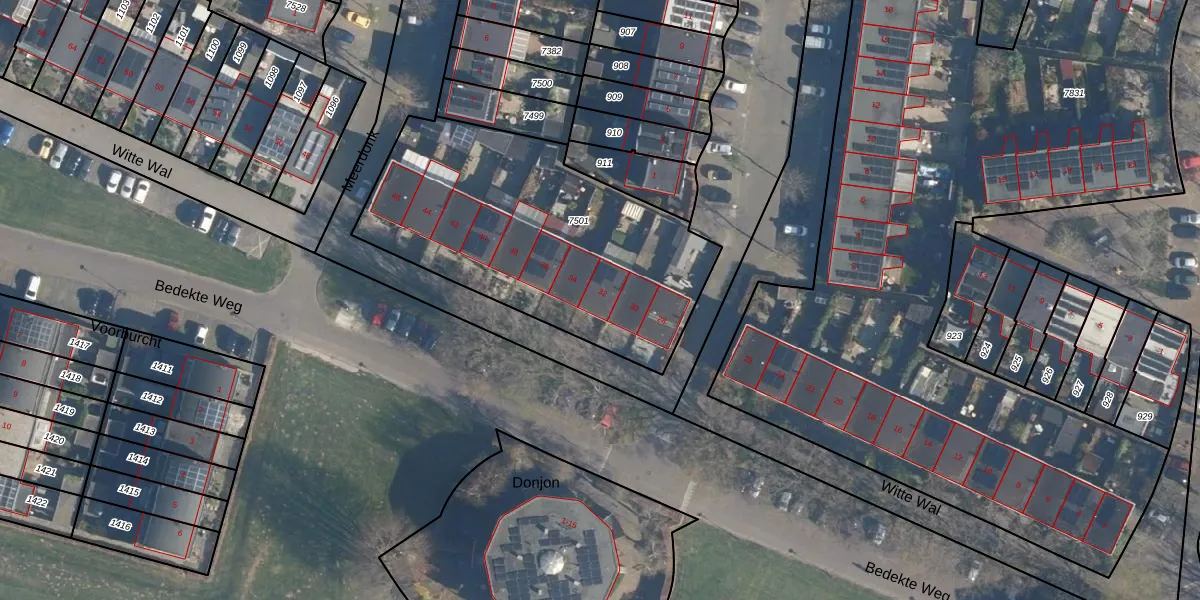 Het perceel waarop Witte Wal 32 staat heeft een oppervlakte van 1422 m². Dit is een zeer groot perceel. De perceeloppervlakte wordt geregistreerd door het Kadaster. Gedetailleerde informatie over de maten van dit perceel kunt u vinden in het rapport Kadastrale kaart met maatvoering van Witte Wal 32.