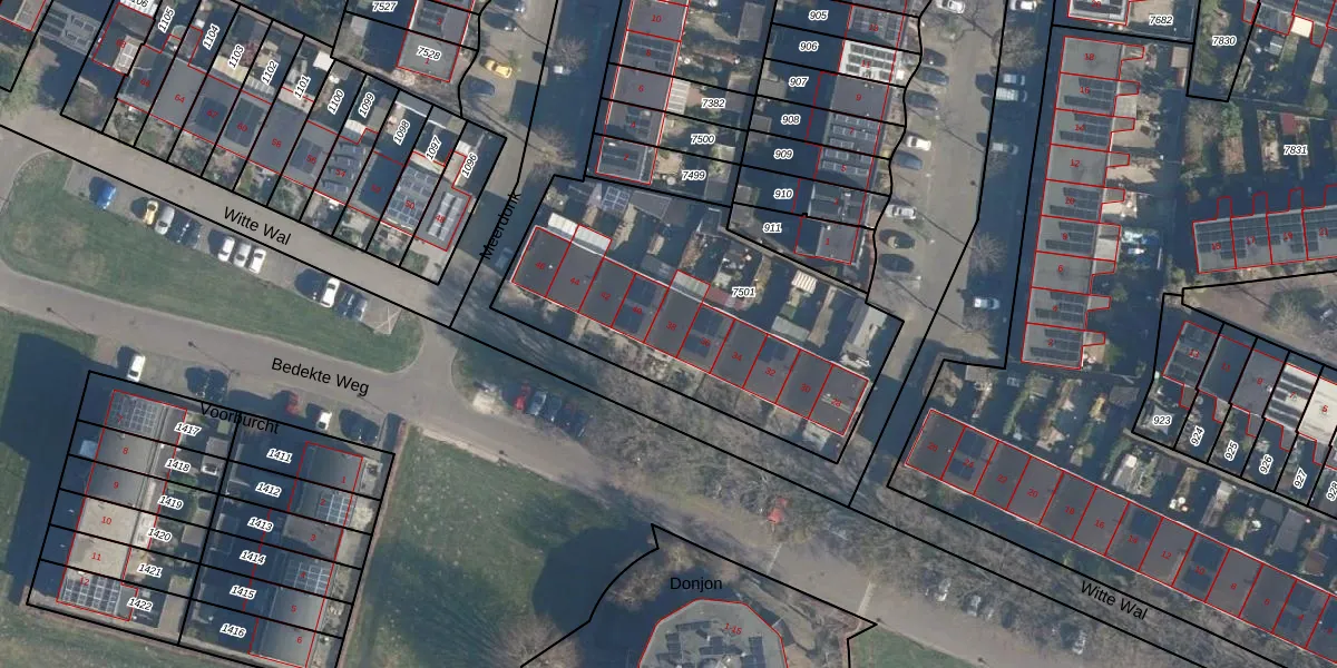 Het perceel waarop Witte Wal 38 staat heeft een oppervlakte van 1422 m². Dit is een zeer groot perceel. De perceeloppervlakte wordt geregistreerd door het Kadaster. Gedetailleerde informatie over de maten van dit perceel kunt u vinden in het rapport Kadastrale kaart met maatvoering van Witte Wal 38.