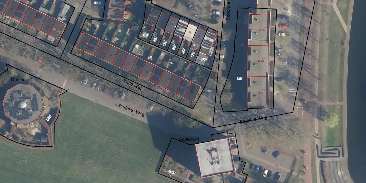 Het perceel waarop Witte Wal 4 staat heeft een oppervlakte van 4340 m². Dit is een zeer groot perceel. De perceeloppervlakte wordt geregistreerd door het Kadaster. Gedetailleerde informatie over de maten van dit perceel kunt u vinden in het rapport Kadastrale kaart met maatvoering van Witte Wal 4.