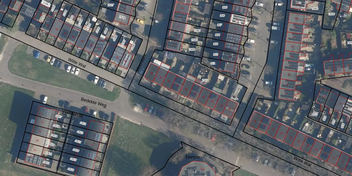 Het perceel waarop Witte Wal 40 staat heeft een oppervlakte van 1422 m². Dit is een zeer groot perceel. De perceeloppervlakte wordt geregistreerd door het Kadaster. Gedetailleerde informatie over de maten van dit perceel kunt u vinden in het rapport Kadastrale kaart met maatvoering van Witte Wal 40.
