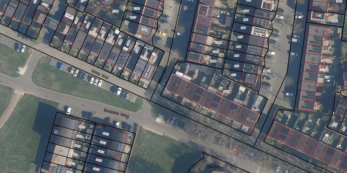 Het perceel waarop Witte Wal 46 staat heeft een oppervlakte van 1422 m². Dit is een zeer groot perceel. De perceeloppervlakte wordt geregistreerd door het Kadaster. Gedetailleerde informatie over de maten van dit perceel kunt u vinden in het rapport Kadastrale kaart met maatvoering van Witte Wal 46.