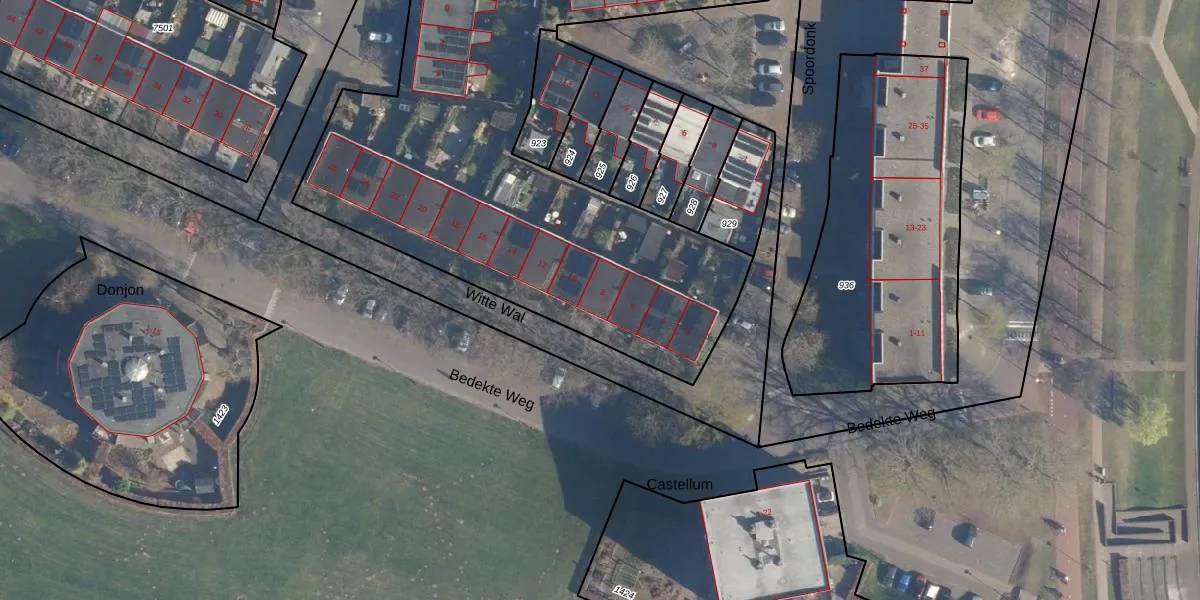 Het perceel waarop Witte Wal 8 staat heeft een oppervlakte van 4340 m². Dit is een zeer groot perceel. De perceeloppervlakte wordt geregistreerd door het Kadaster. Gedetailleerde informatie over de maten van dit perceel kunt u vinden in het rapport Kadastrale kaart met maatvoering van Witte Wal 8.
