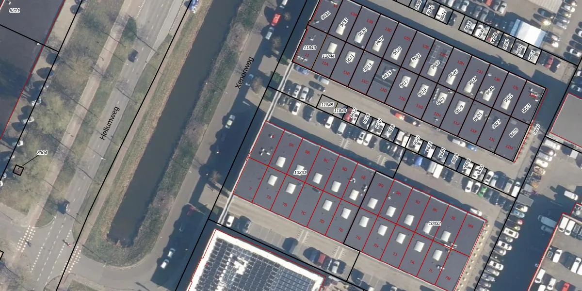 Het perceel waarop Xenonweg 9-A staat heeft een oppervlakte van 2455 m². Dit is een zeer groot perceel. De perceeloppervlakte wordt geregistreerd door het Kadaster. Gedetailleerde informatie over de maten van dit perceel kunt u vinden in het rapport Kadastrale kaart met maatvoering van Xenonweg 9-A.
