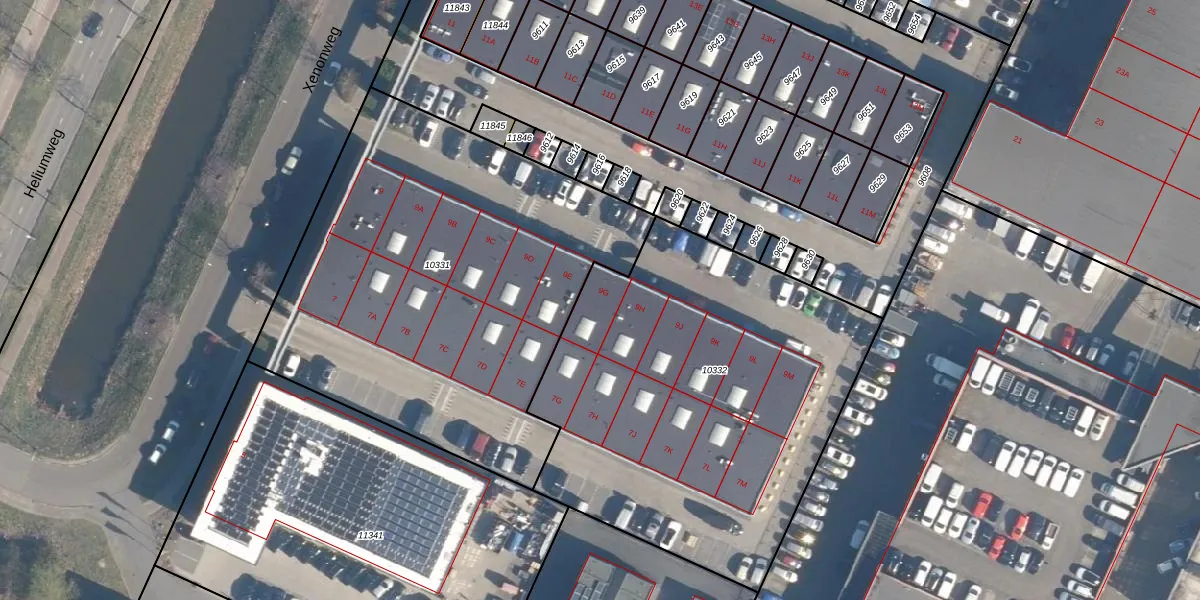 Het perceel waarop Xenonweg 9-G staat heeft een oppervlakte van 2260 m². Dit is een zeer groot perceel. De perceeloppervlakte wordt geregistreerd door het Kadaster. Gedetailleerde informatie over de maten van dit perceel kunt u vinden in het rapport Kadastrale kaart met maatvoering van Xenonweg 9-G.