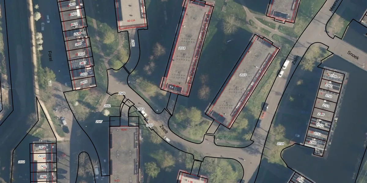 Zeelt 42 is gelegen op kadastraal perceel AMF00P2014. Deze kadastrale aanduiding is uniek en wordt gebruikt door het Kadaster om eigendomsrechten en andere zakelijke rechten vast te leggen. Het perceel maakt onderdeel uit van de kadastrale gemeente Amersfoort.