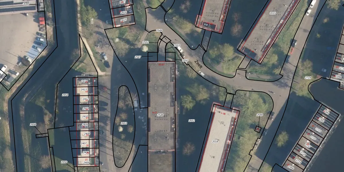 Zeelt 45 is gelegen op kadastraal perceel AMF00P2548. Deze kadastrale aanduiding is uniek en wordt gebruikt door het Kadaster om eigendomsrechten en andere zakelijke rechten vast te leggen. Het perceel maakt onderdeel uit van de kadastrale gemeente Amersfoort.