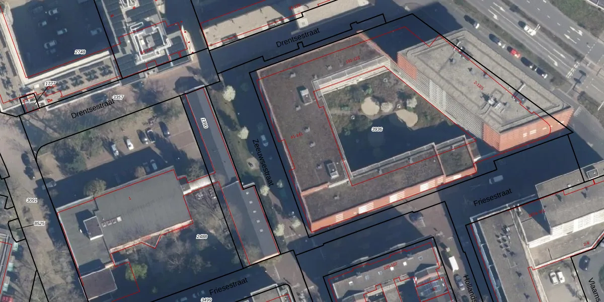 Het perceel waarop Zeeuwsestraat 65 staat heeft een oppervlakte van 4368 m². Dit is een zeer groot perceel. De perceeloppervlakte wordt geregistreerd door het Kadaster. Gedetailleerde informatie over de maten van dit perceel kunt u vinden in het rapport Kadastrale kaart met maatvoering van Zeeuwsestraat 65.