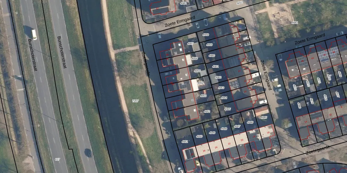 Het perceel waarop Zoetegaarde 34 staat heeft een oppervlakte van 206 m². Dit is een middelgroot perceel. De perceeloppervlakte wordt geregistreerd door het Kadaster. Gedetailleerde informatie over de maten van dit perceel kunt u vinden in het rapport Kadastrale kaart met maatvoering van Zoetegaarde 34.