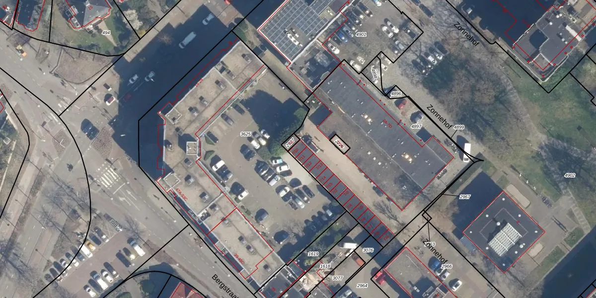 Het perceel waarop Zonnehof 7-10 staat heeft een oppervlakte van 1984 m². Dit is een zeer groot perceel. De perceeloppervlakte wordt geregistreerd door het Kadaster. Gedetailleerde informatie over de maten van dit perceel kunt u vinden in het rapport Kadastrale kaart met maatvoering van Zonnehof 7-10.