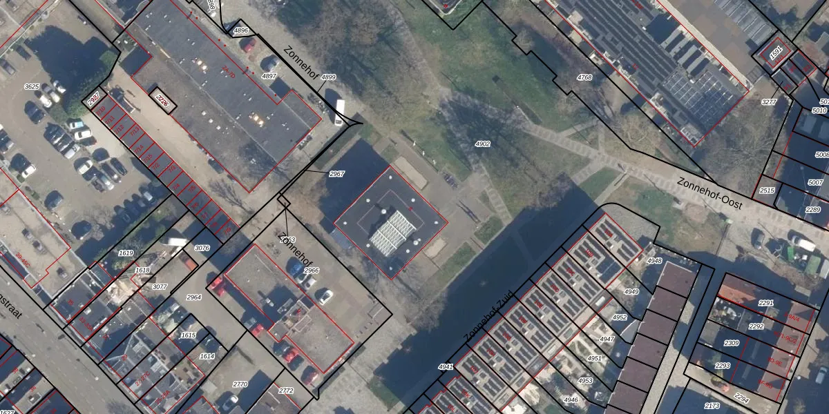 Gebruik de zoekbalk of klik op een perceel voor informatie over de adressen binnen dit perceel.