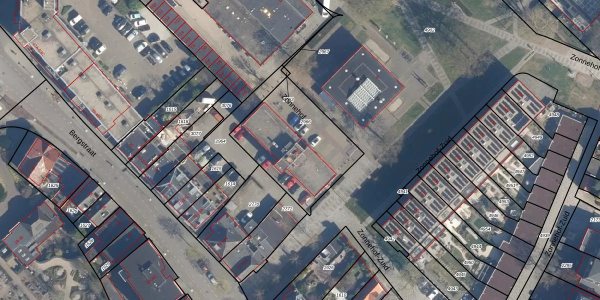 Zonnehof 9 is gelegen op kadastraal perceel AMF00H2966. Deze kadastrale aanduiding is uniek en wordt gebruikt door het Kadaster om eigendomsrechten en andere zakelijke rechten vast te leggen. Het perceel maakt onderdeel uit van de kadastrale gemeente Amersfoort.
