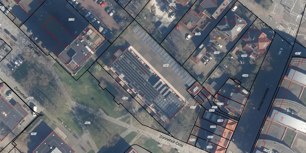 Het perceel waarop Zonnehof-Oost 13-D staat heeft een oppervlakte van 2635 m². Dit is een zeer groot perceel. De perceeloppervlakte wordt geregistreerd door het Kadaster. Gedetailleerde informatie over de maten van dit perceel kunt u vinden in het rapport Kadastrale kaart met maatvoering van Zonnehof-Oost 13-D.