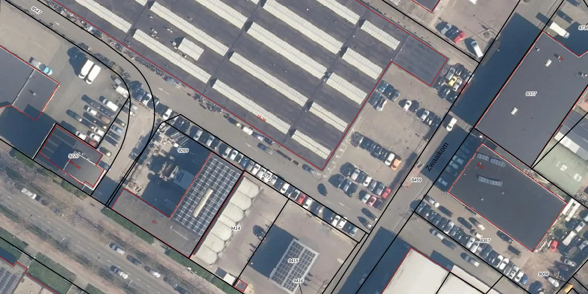 Het perceel waarop Zwaaikom 15 staat heeft een oppervlakte van 1,3 ha. Dit is een zeer groot perceel. De perceeloppervlakte wordt geregistreerd door het Kadaster. Gedetailleerde informatie over de maten van dit perceel kunt u vinden in het rapport Kadastrale kaart met maatvoering van Zwaaikom 15.