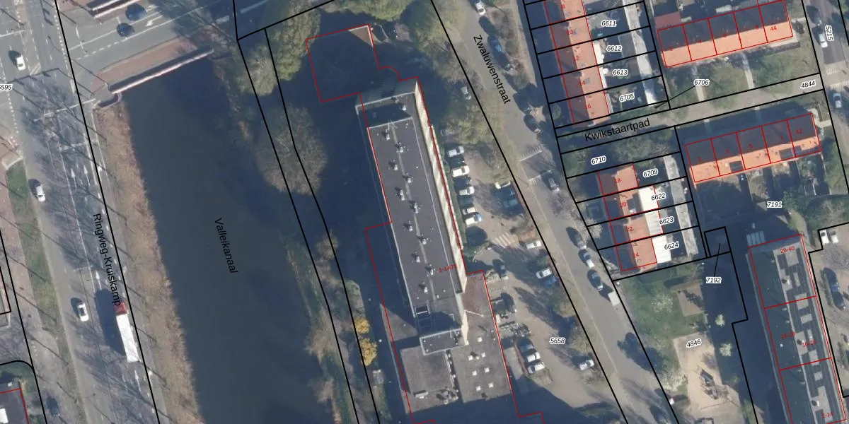 Het perceel waarop Zwaluwenstraat 1-A-56 staat heeft een oppervlakte van 6960 m². Dit is een zeer groot perceel. De perceeloppervlakte wordt geregistreerd door het Kadaster. Gedetailleerde informatie over de maten van dit perceel kunt u vinden in het rapport Kadastrale kaart met maatvoering van Zwaluwenstraat 1-A-56.