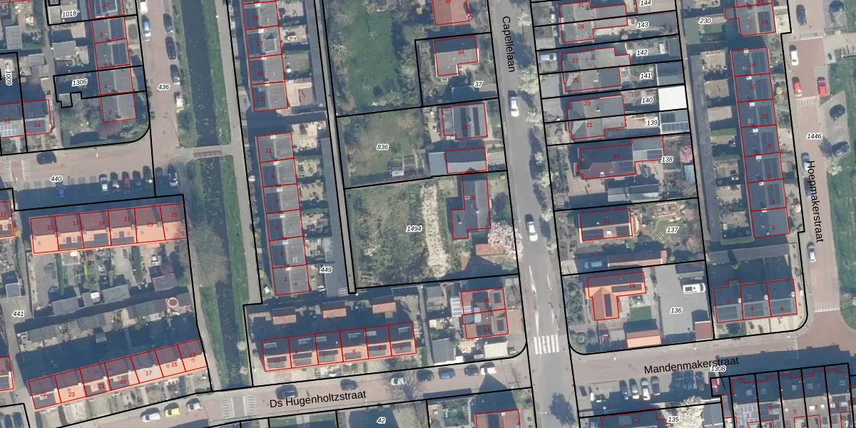 Het perceel waarop Capellelaan 28-h staat heeft een oppervlakte van 915 m². Dit is een groot perceel. De perceeloppervlakte wordt geregistreerd door het Kadaster. Gedetailleerde informatie over de maten van dit perceel kunt u vinden in het rapport Kadastrale kaart met maatvoering van Capellelaan 28-h.