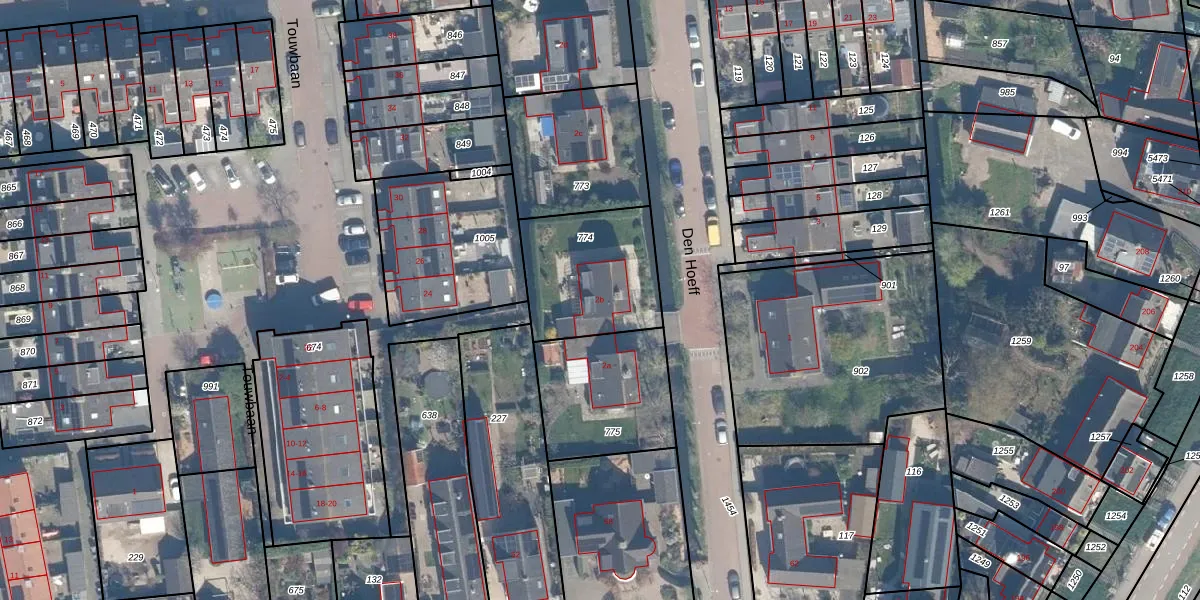Het perceel waarop Den Hoeff 2-b staat heeft een oppervlakte van 455 m². Dit is een groot perceel. De perceeloppervlakte wordt geregistreerd door het Kadaster. Gedetailleerde informatie over de maten van dit perceel kunt u vinden in het rapport Kadastrale kaart met maatvoering van Den Hoeff 2-b.