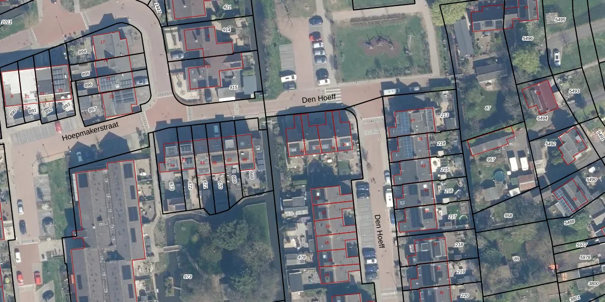 Het perceel waarop Den Hoeff 32 staat heeft een oppervlakte van 2630 m². Dit is een zeer groot perceel. De perceeloppervlakte wordt geregistreerd door het Kadaster. Gedetailleerde informatie over de maten van dit perceel kunt u vinden in het rapport Kadastrale kaart met maatvoering van Den Hoeff 32.