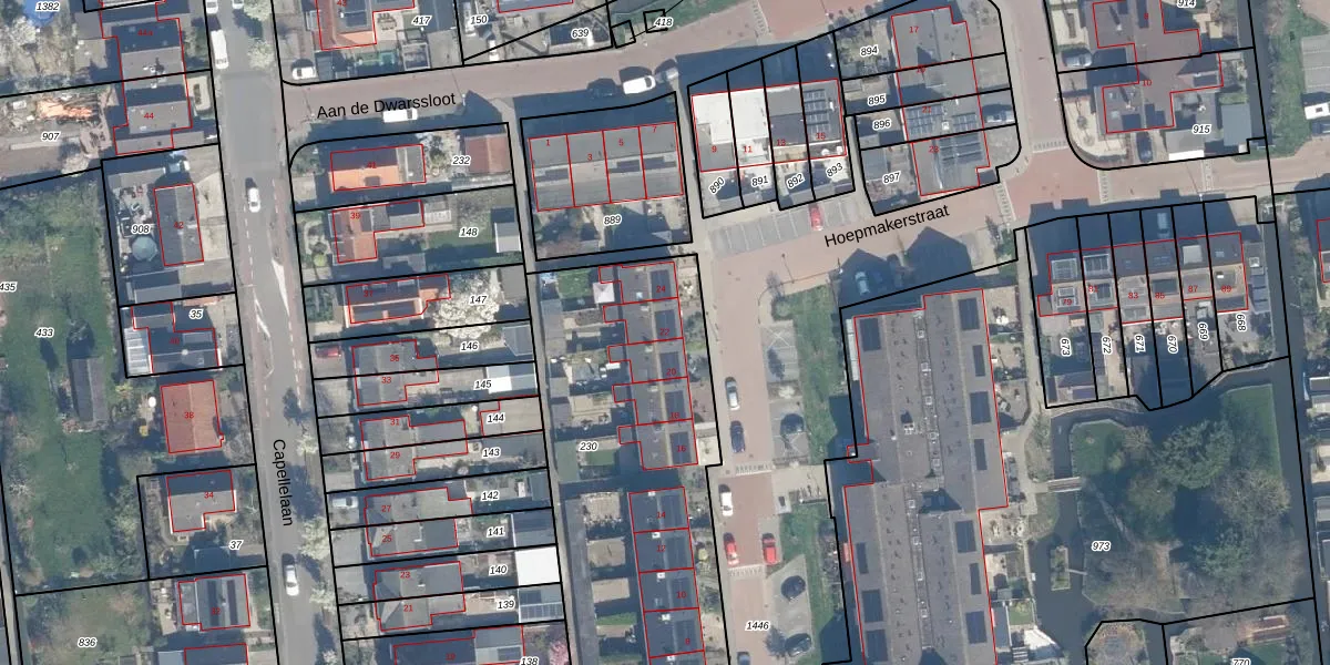 Het perceel waarop Hoepmakerstraat 22 staat heeft een oppervlakte van 2432 m². Dit is een zeer groot perceel. De perceeloppervlakte wordt geregistreerd door het Kadaster. Gedetailleerde informatie over de maten van dit perceel kunt u vinden in het rapport Kadastrale kaart met maatvoering van Hoepmakerstraat 22.