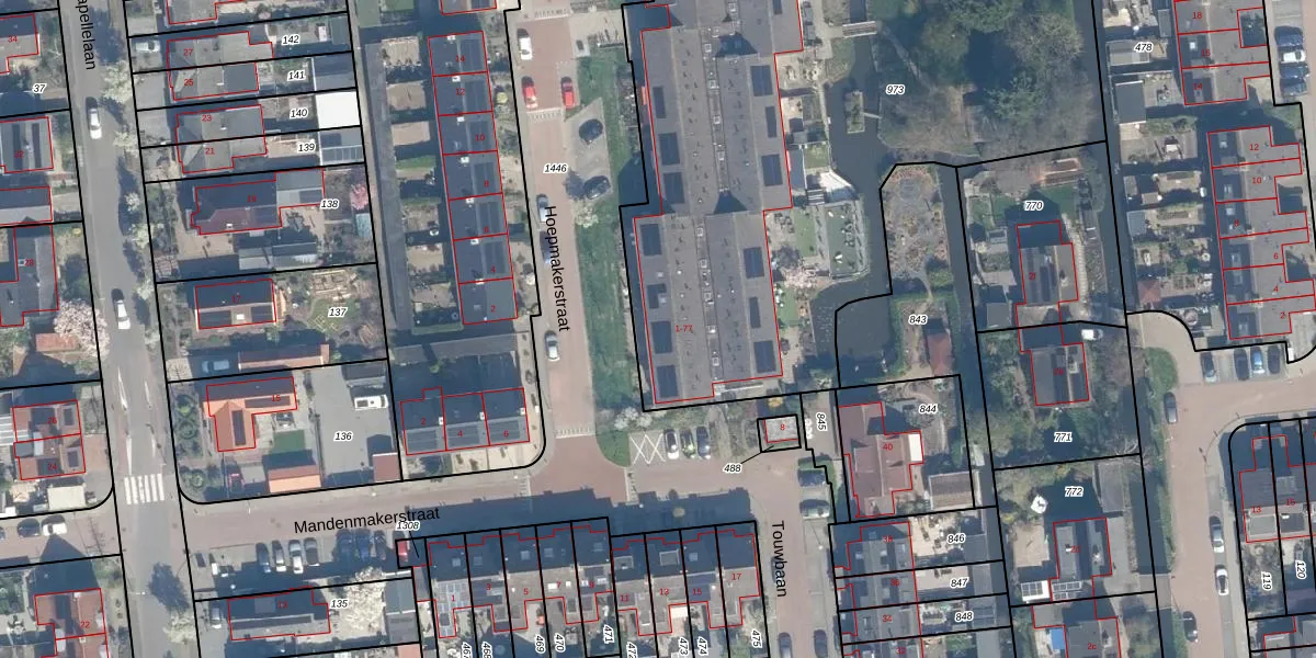 Het perceel waarop Hoepmakerstraat 55 staat heeft een oppervlakte van 4138 m². Dit is een zeer groot perceel. De perceeloppervlakte wordt geregistreerd door het Kadaster. Gedetailleerde informatie over de maten van dit perceel kunt u vinden in het rapport Kadastrale kaart met maatvoering van Hoepmakerstraat 55.