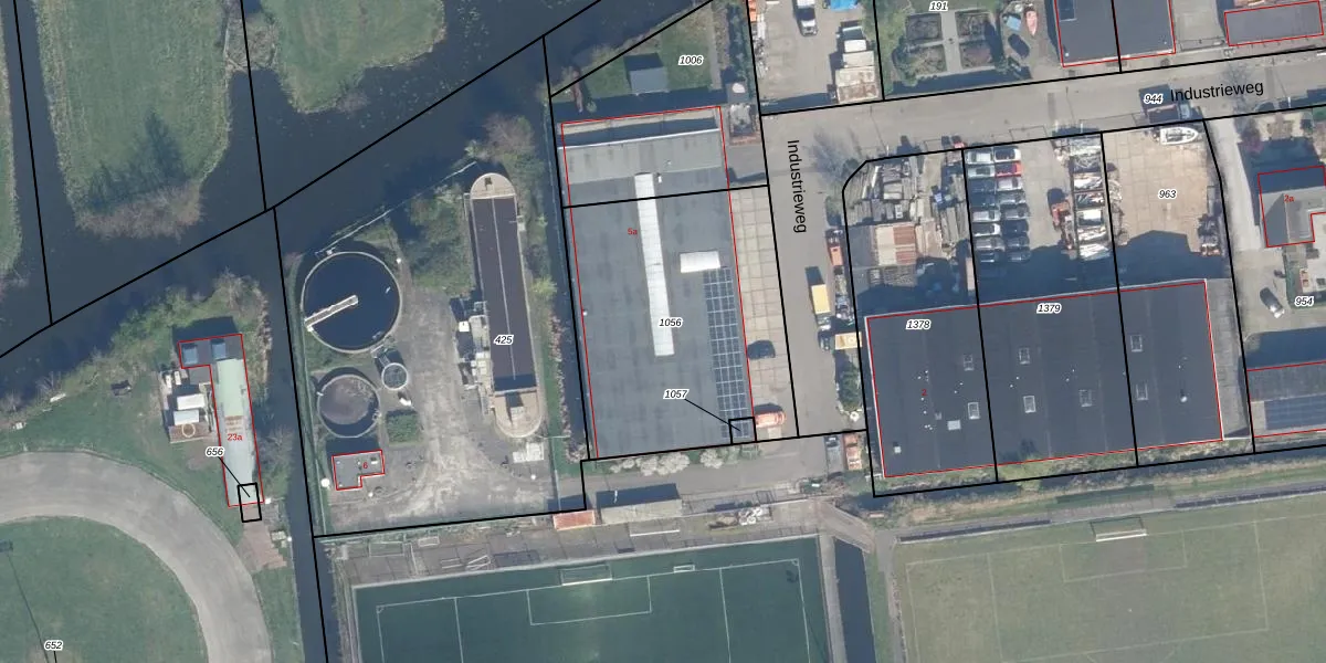 Het perceel waarop Industrieweg 5 staat heeft een oppervlakte van 1217 m². Dit is een zeer groot perceel. De perceeloppervlakte wordt geregistreerd door het Kadaster. Gedetailleerde informatie over de maten van dit perceel kunt u vinden in het rapport Kadastrale kaart met maatvoering van Industrieweg 5.