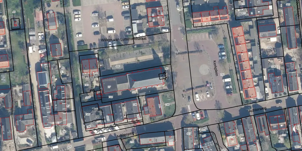 Het perceel waarop Kerkplein 4 staat heeft een oppervlakte van 825 m². Dit is een groot perceel. De perceeloppervlakte wordt geregistreerd door het Kadaster. Gedetailleerde informatie over de maten van dit perceel kunt u vinden in het rapport Kadastrale kaart met maatvoering van Kerkplein 4.