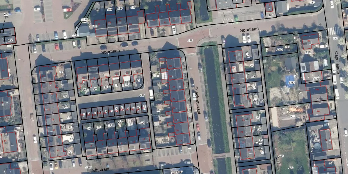 Het perceel waarop Snackertstraat 24 staat heeft een oppervlakte van 1200 m². Dit is een zeer groot perceel. De perceeloppervlakte wordt geregistreerd door het Kadaster. Gedetailleerde informatie over de maten van dit perceel kunt u vinden in het rapport Kadastrale kaart met maatvoering van Snackertstraat 24.