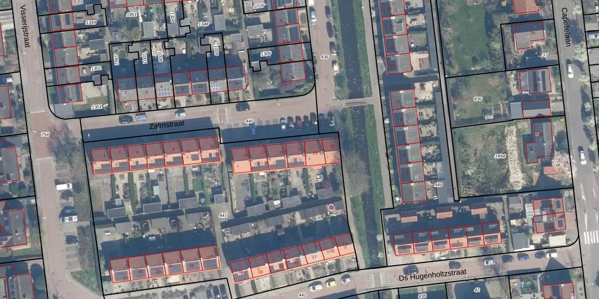 Het perceel waarop Zalmstraat 21 staat heeft een oppervlakte van 4285 m². Dit is een zeer groot perceel. De perceeloppervlakte wordt geregistreerd door het Kadaster. Gedetailleerde informatie over de maten van dit perceel kunt u vinden in het rapport Kadastrale kaart met maatvoering van Zalmstraat 21.