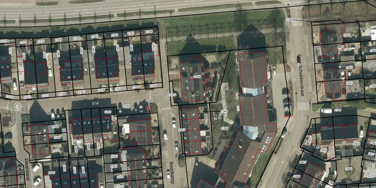 Het perceel waarop Boonkamp 2 staat heeft een oppervlakte van 691 m². Dit is een groot perceel. De perceeloppervlakte wordt geregistreerd door het Kadaster. Gedetailleerde informatie over de maten van dit perceel kunt u vinden in het rapport Kadastrale kaart met maatvoering van Boonkamp 2.