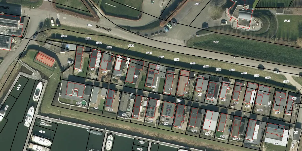 Het perceel waarop Bovendijk 2-20 staat heeft een oppervlakte van 171 m². Dit is een middelgroot perceel. De perceeloppervlakte wordt geregistreerd door het Kadaster. Gedetailleerde informatie over de maten van dit perceel kunt u vinden in het rapport Kadastrale kaart met maatvoering van Bovendijk 2-20.