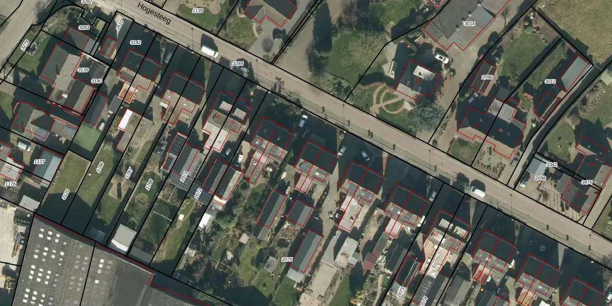 Het perceel waarop Hogesteeg 55 staat heeft een oppervlakte van 4340 m². Dit is een zeer groot perceel. De perceeloppervlakte wordt geregistreerd door het Kadaster. Gedetailleerde informatie over de maten van dit perceel kunt u vinden in het rapport Kadastrale kaart met maatvoering van Hogesteeg 55.