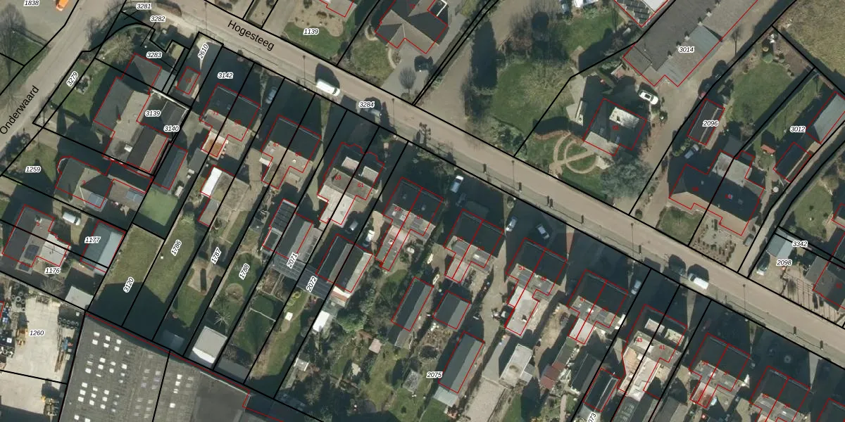 Het perceel waarop Hogesteeg 57 staat heeft een oppervlakte van 4340 m². Dit is een zeer groot perceel. De perceeloppervlakte wordt geregistreerd door het Kadaster. Gedetailleerde informatie over de maten van dit perceel kunt u vinden in het rapport Kadastrale kaart met maatvoering van Hogesteeg 57.