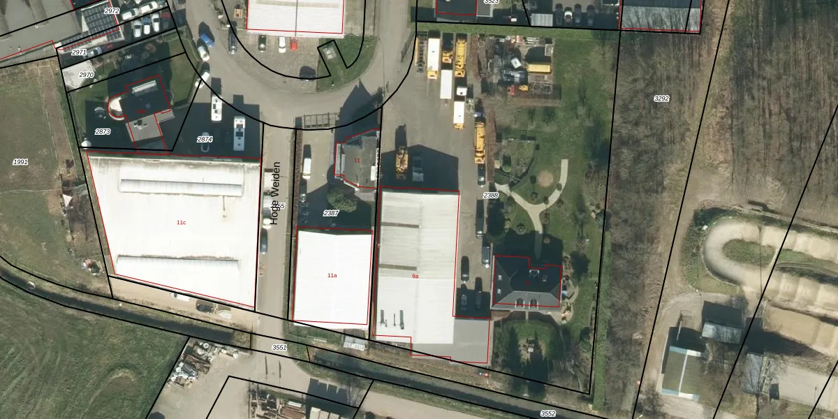 Het perceel waarop Industrieweg 9-a staat heeft een oppervlakte van 4365 m². Dit is een zeer groot perceel. De perceeloppervlakte wordt geregistreerd door het Kadaster. Gedetailleerde informatie over de maten van dit perceel kunt u vinden in het rapport Kadastrale kaart met maatvoering van Industrieweg 9-a.