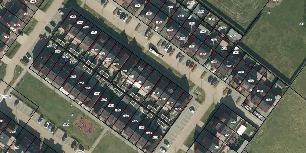 Het perceel waarop Meander 9 staat heeft een oppervlakte van 165 m². Dit is een middelgroot perceel. De perceeloppervlakte wordt geregistreerd door het Kadaster. Gedetailleerde informatie over de maten van dit perceel kunt u vinden in het rapport Kadastrale kaart met maatvoering van Meander 9.