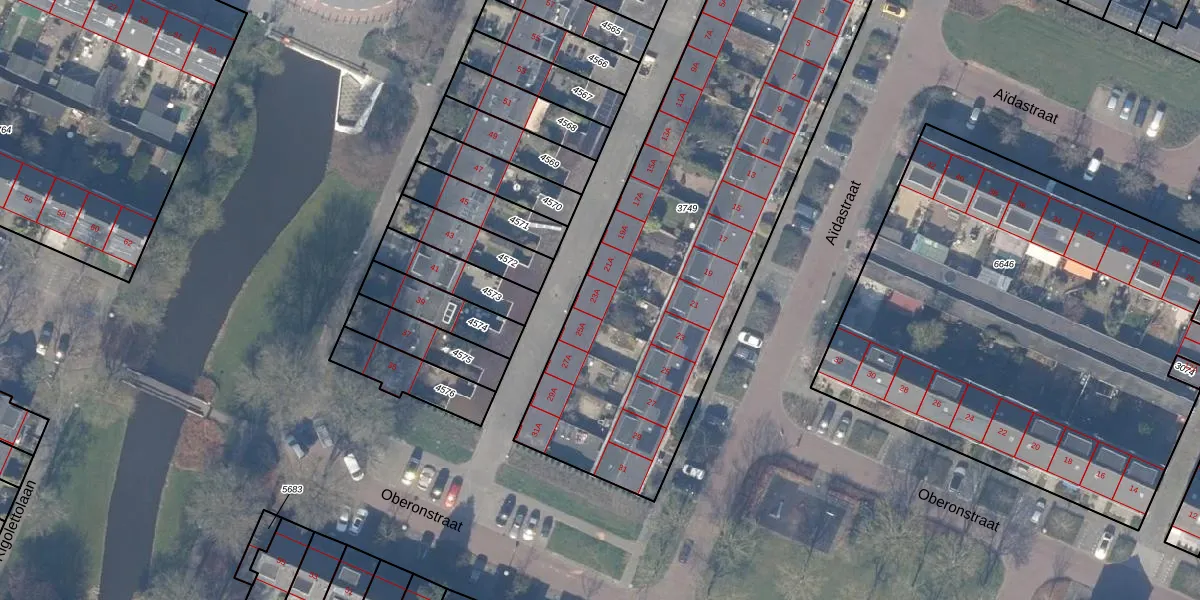 Het perceel waarop Aïdastraat 23-A staat heeft een oppervlakte van 2434 m². Dit is een zeer groot perceel. De perceeloppervlakte wordt geregistreerd door het Kadaster. Gedetailleerde informatie over de maten van dit perceel kunt u vinden in het rapport Kadastrale kaart met maatvoering van Aïdastraat 23-A.