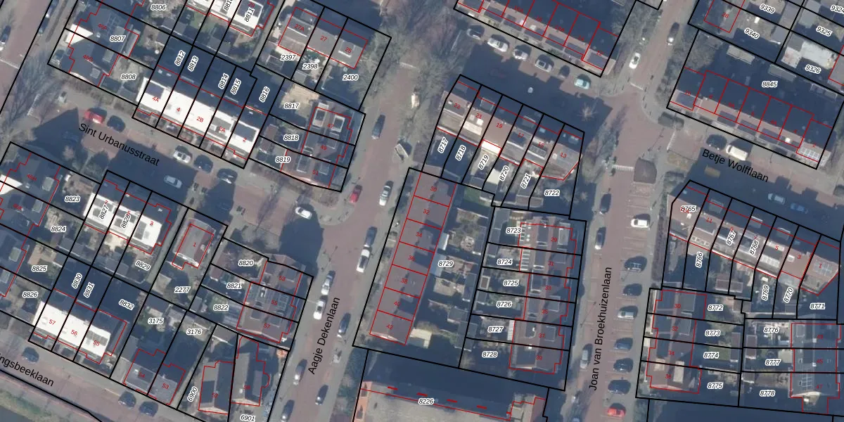Aagje Dekenlaan 32 is gelegen op kadastraal perceel ASV00O8729. Deze kadastrale aanduiding is uniek en wordt gebruikt door het Kadaster om eigendomsrechten en andere zakelijke rechten vast te leggen. Het perceel maakt onderdeel uit van de kadastrale gemeente Amstelveen.