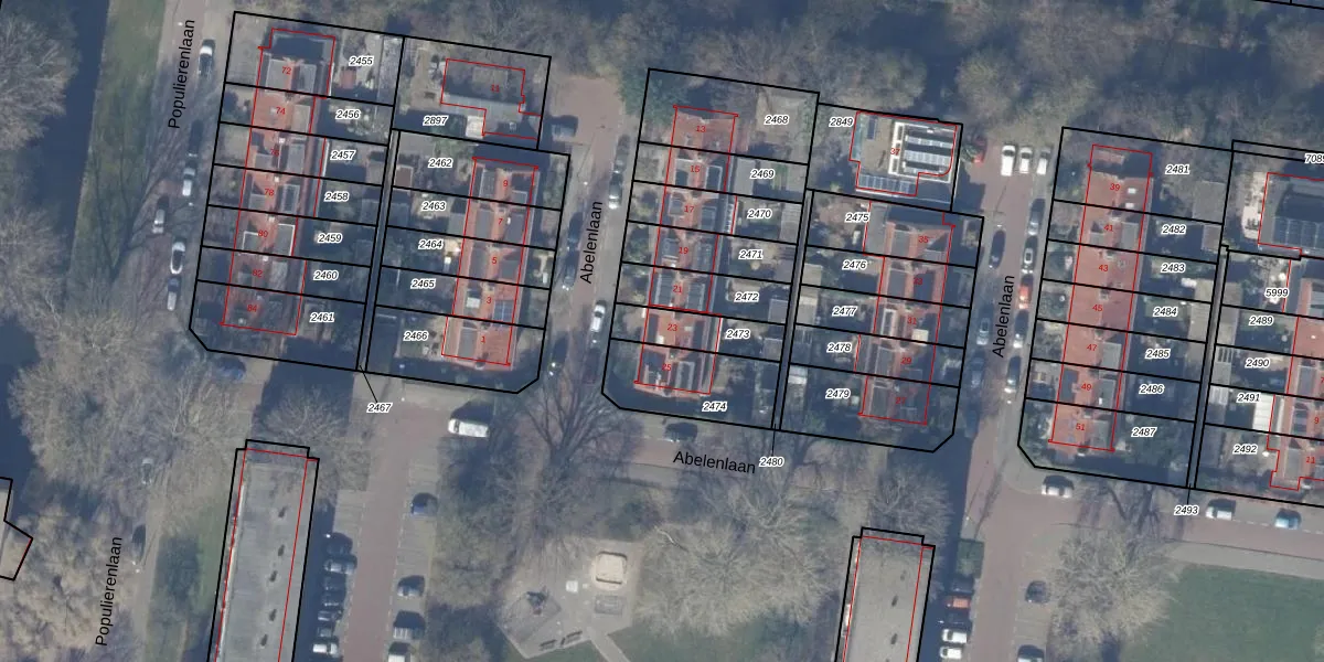 Gebruik de zoekbalk of klik op een perceel voor informatie over de adressen binnen dit perceel.