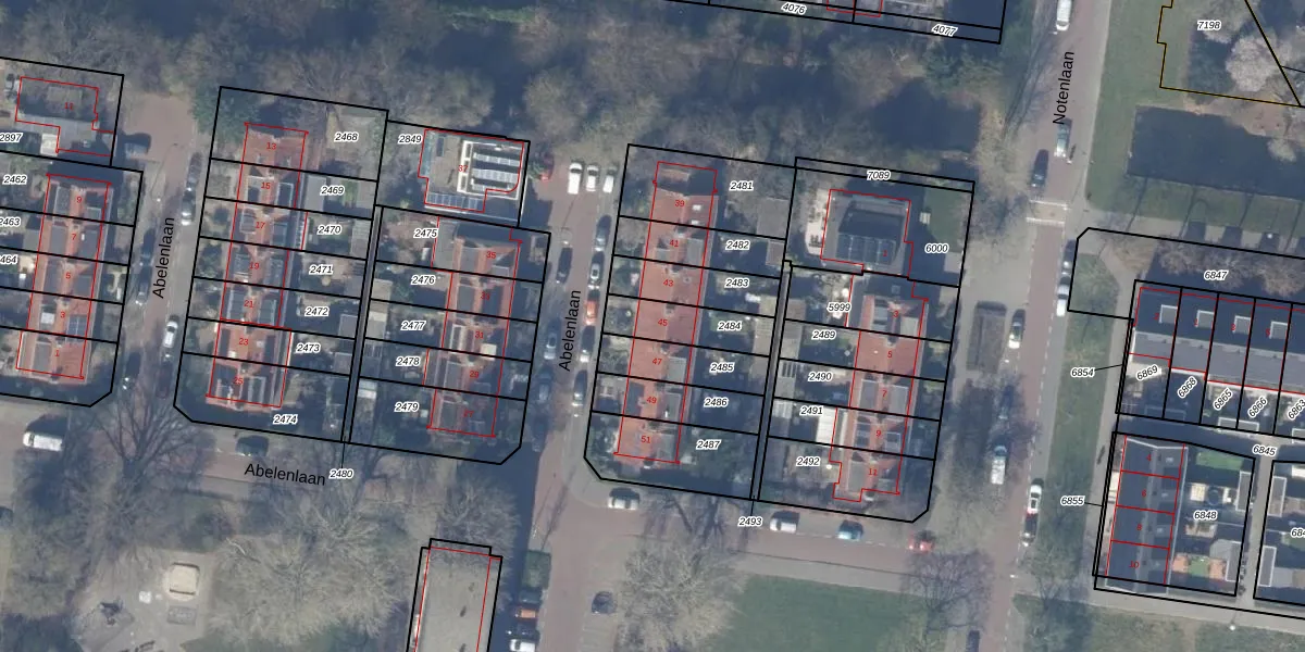 Gebruik de zoekbalk of klik op een perceel voor informatie over de adressen binnen dit perceel.