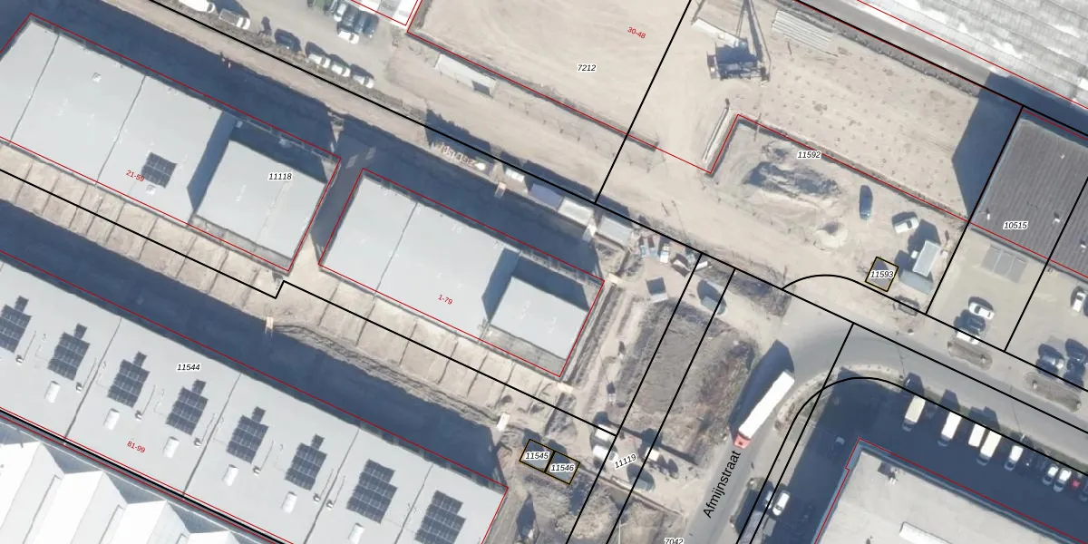 Het perceel waarop Afmijnstraat 5 staat heeft een oppervlakte van 5780 m². Dit is een zeer groot perceel. De perceeloppervlakte wordt geregistreerd door het Kadaster. Gedetailleerde informatie over de maten van dit perceel kunt u vinden in het rapport Kadastrale kaart met maatvoering van Afmijnstraat 5.