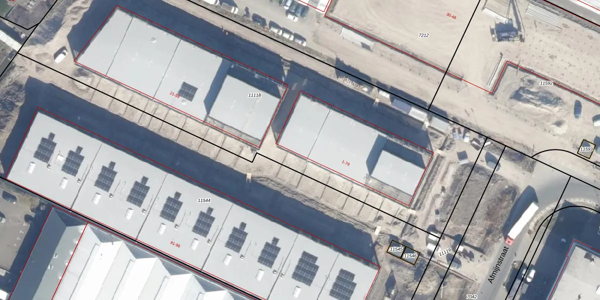 Het perceel waarop Afmijnstraat 61 staat heeft een oppervlakte van 5780 m². Dit is een zeer groot perceel. De perceeloppervlakte wordt geregistreerd door het Kadaster. Gedetailleerde informatie over de maten van dit perceel kunt u vinden in het rapport Kadastrale kaart met maatvoering van Afmijnstraat 61.
