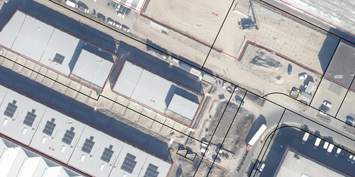 Het perceel waarop Afmijnstraat 7 staat heeft een oppervlakte van 5780 m². Dit is een zeer groot perceel. De perceeloppervlakte wordt geregistreerd door het Kadaster. Gedetailleerde informatie over de maten van dit perceel kunt u vinden in het rapport Kadastrale kaart met maatvoering van Afmijnstraat 7.