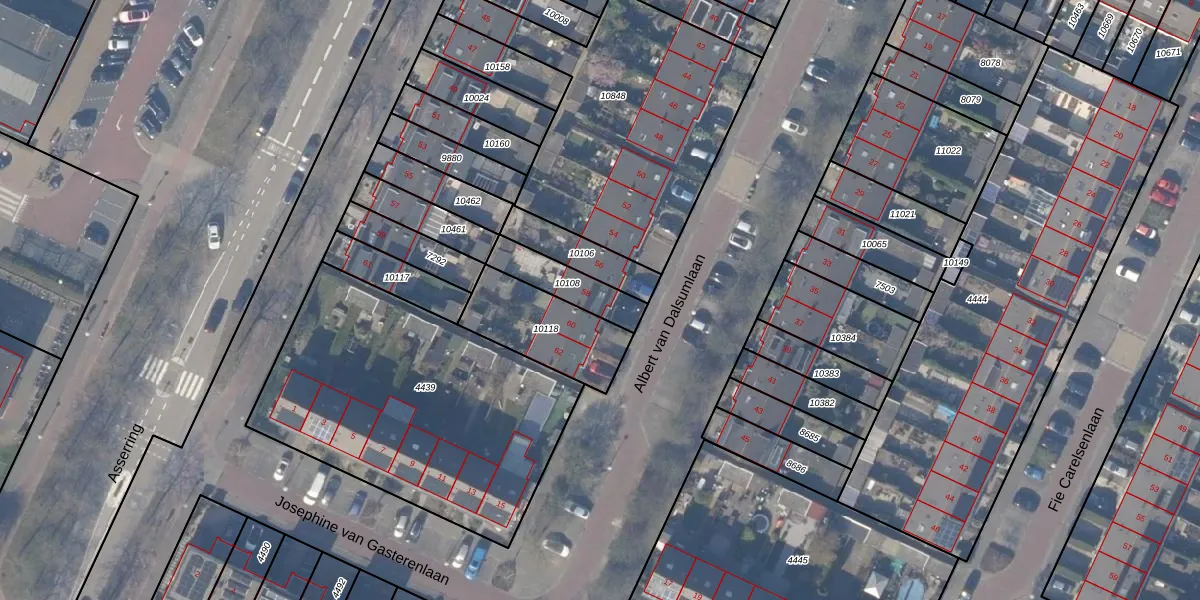 Gebruik de zoekbalk of klik op een perceel voor informatie over de adressen binnen dit perceel.