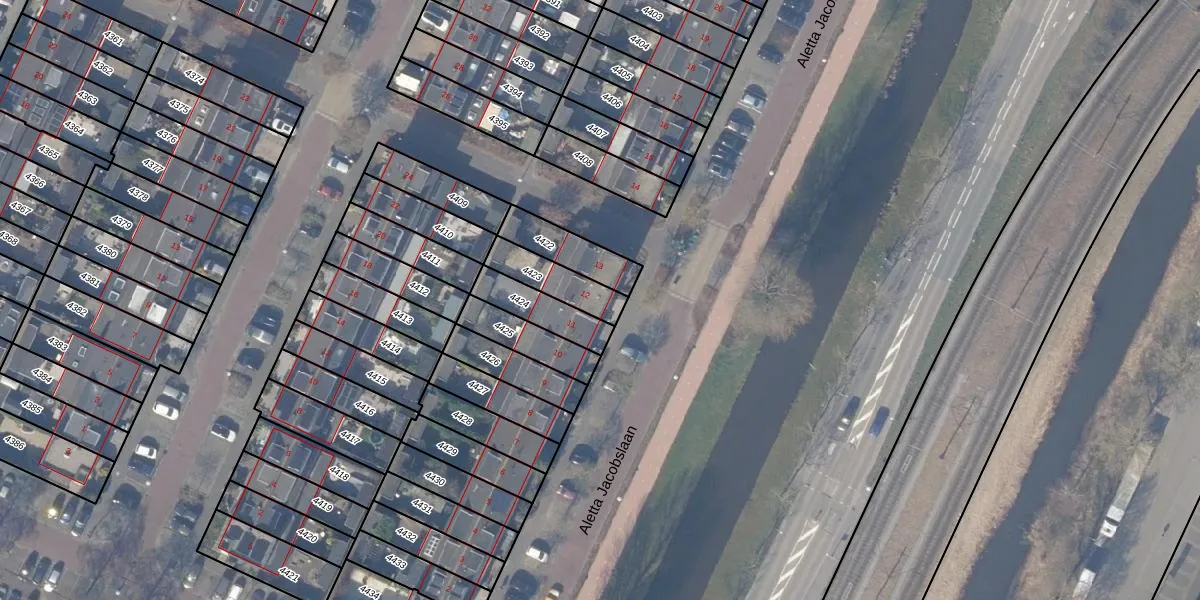 Aletta Jacobslaan 12 is gelegen op kadastraal perceel ASV00O4423. Deze kadastrale aanduiding is uniek en wordt gebruikt door het Kadaster om eigendomsrechten en andere zakelijke rechten vast te leggen. Het perceel maakt onderdeel uit van de kadastrale gemeente Amstelveen.