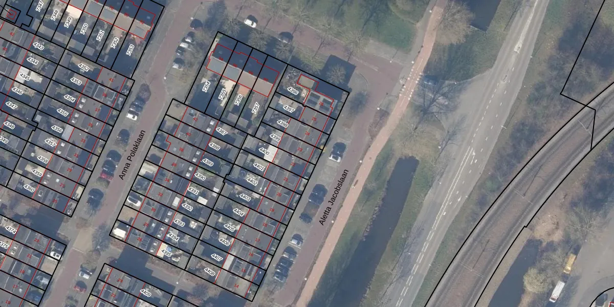 Gebruik de zoekbalk of klik op een perceel voor informatie over de adressen binnen dit perceel.