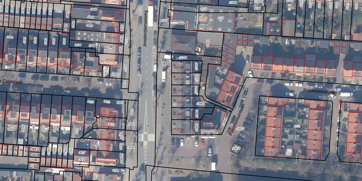 Amsterdamseweg 154-A is gelegen op kadastraal perceel ASV00H11035. Deze kadastrale aanduiding is uniek en wordt gebruikt door het Kadaster om eigendomsrechten en andere zakelijke rechten vast te leggen. Het perceel maakt onderdeel uit van de kadastrale gemeente Amstelveen.