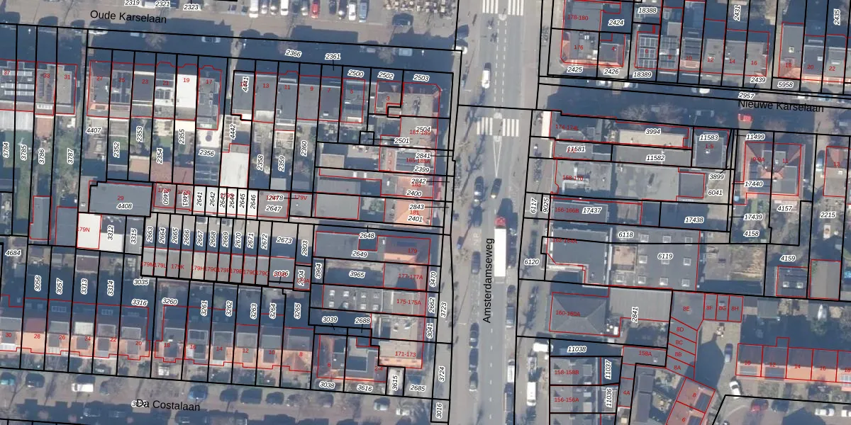 Amsterdamseweg 181 is gelegen op kadastraal perceel ASV00G2401. Deze kadastrale aanduiding is uniek en wordt gebruikt door het Kadaster om eigendomsrechten en andere zakelijke rechten vast te leggen. Het perceel maakt onderdeel uit van de kadastrale gemeente Amstelveen.