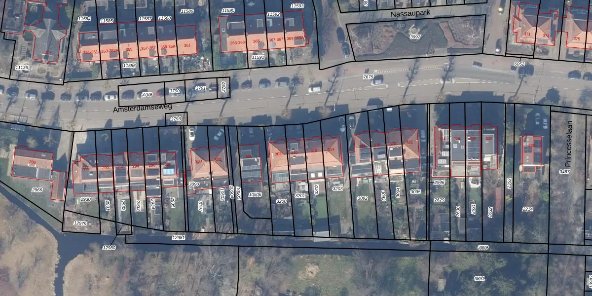 Gebruik de zoekbalk of klik op een perceel voor informatie over de adressen binnen dit perceel.
