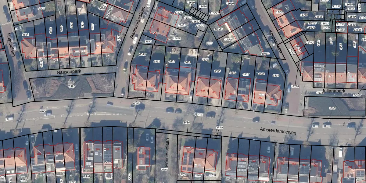 Gebruik de zoekbalk of klik op een perceel voor informatie over de adressen binnen dit perceel.